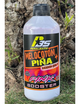 Bote de remojo de medio litro sabor MELOCOTON PIÑA de la marca Peralbaits de la gama PINK. Liquido espeso en color rosa para darle un atractivo visual al cebo, especial para la modalidad de pesca carpfishing.