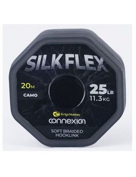 Material de anzuelo trenzado ultra fino. Súper flexible, la trenza blanda SilkFlex es perfecta para usarla en bolsas de PVA sólidas y como alternativa ideal de anzuelo cuando se trata de peces presionados que ya lo han visto todo. Es ideal para utilizarla como sección flexible de un aparejo Combi tradicional, ya que ofrece la máxima flexibilidad. Excelente resistencia a la abrasión y acabado de baja visibilidad. Disponible en Camo en 25lb/11.3kg de tensión de rotura. 20 m por bobina.